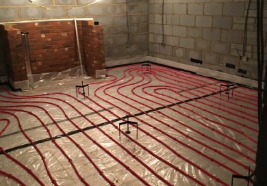 All heating pipes (If chosen) are firmly clipped down and stress relief joints are placed around all walls, pillars and other uprights.